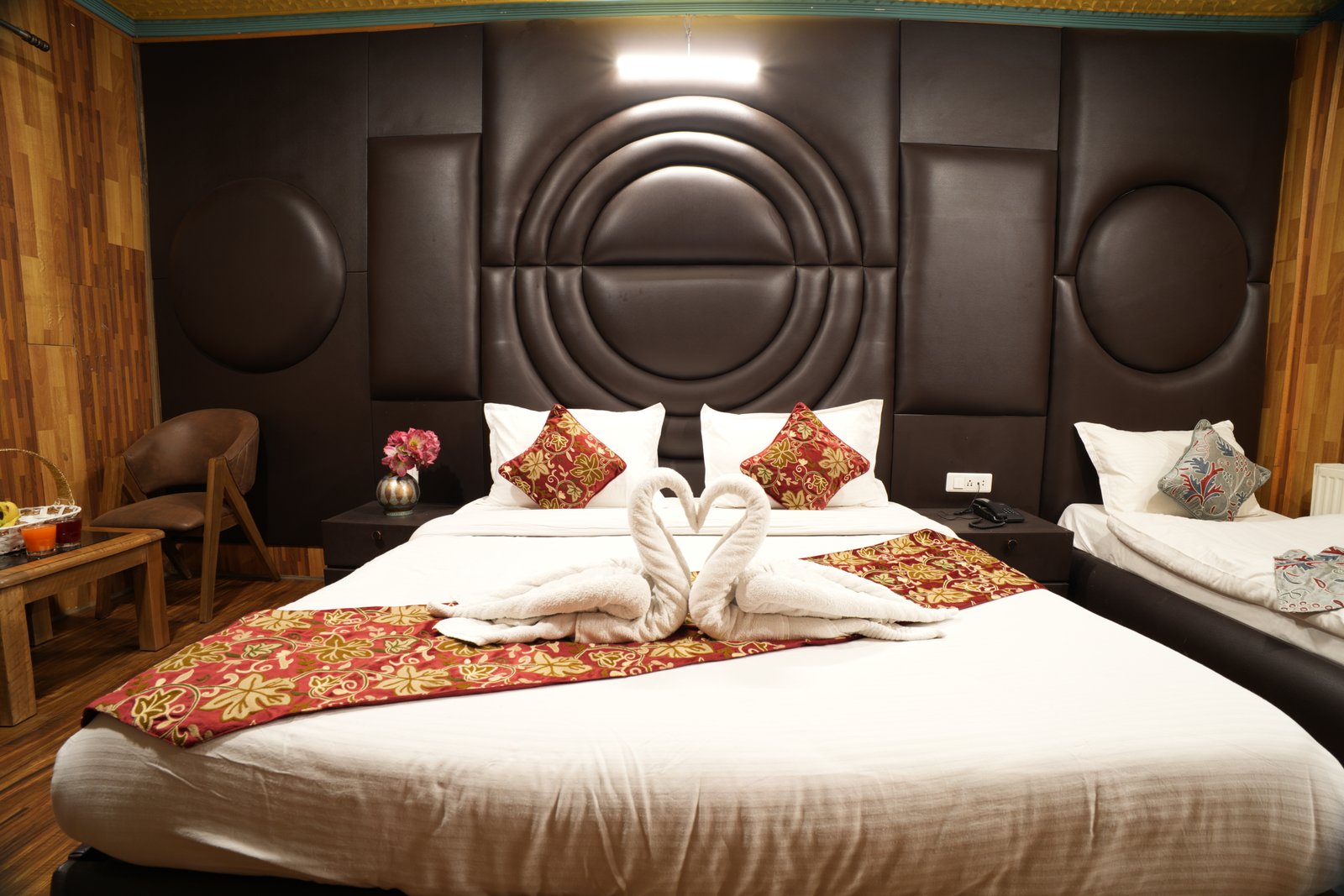 Elegant wooden furnishings, warm interiors, and tasteful décor reflect the cultural essence of Kashmir while modern amenities ensure a convenient and comfortable experience for every guest. The peaceful atmosphere of the rooms provides the perfect place to unwind after a day exploring the beautiful lakes, gardens, and historic landmarks of Srinagar.